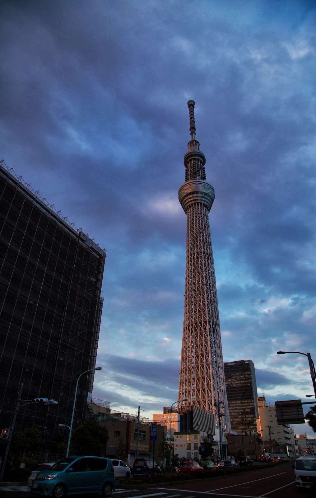黃昏時的天空藍藍紫紫, Skytree 也變了粉紅色~~